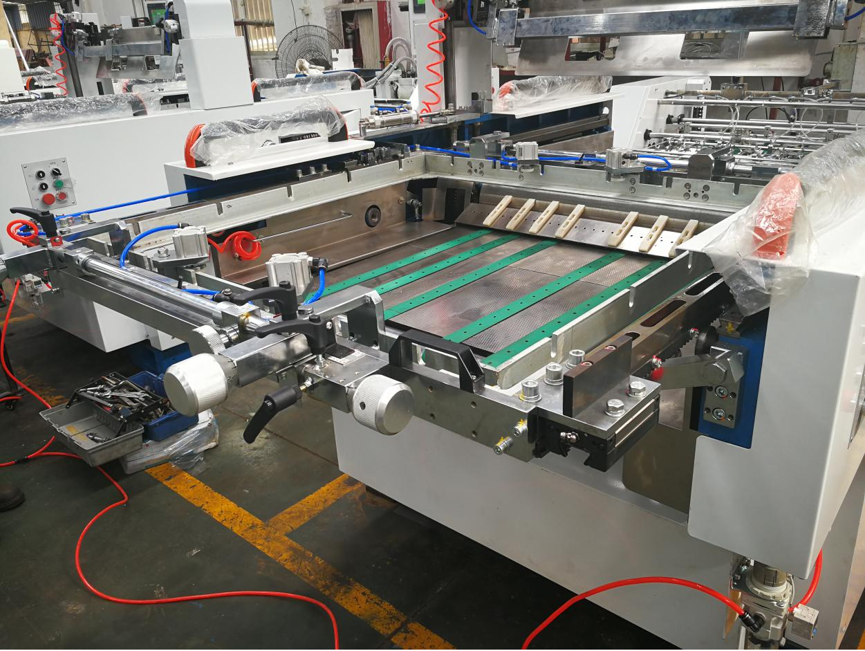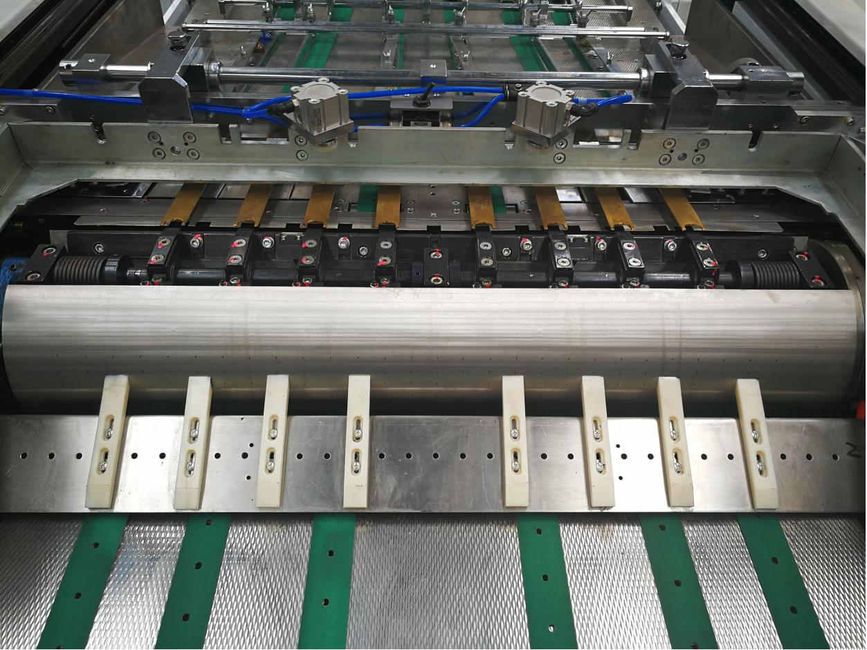 7.The machine can be combined with automatic printing machine. Through the moving clamps it can build up an automatic producing line: Printing – Drying – Conveying – Stacking.